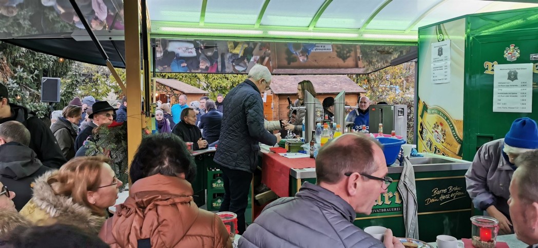 Arbeit ohne Ende - Glühweinverkauf bei Weihnachtsfest der ev. Kirchengemeinde